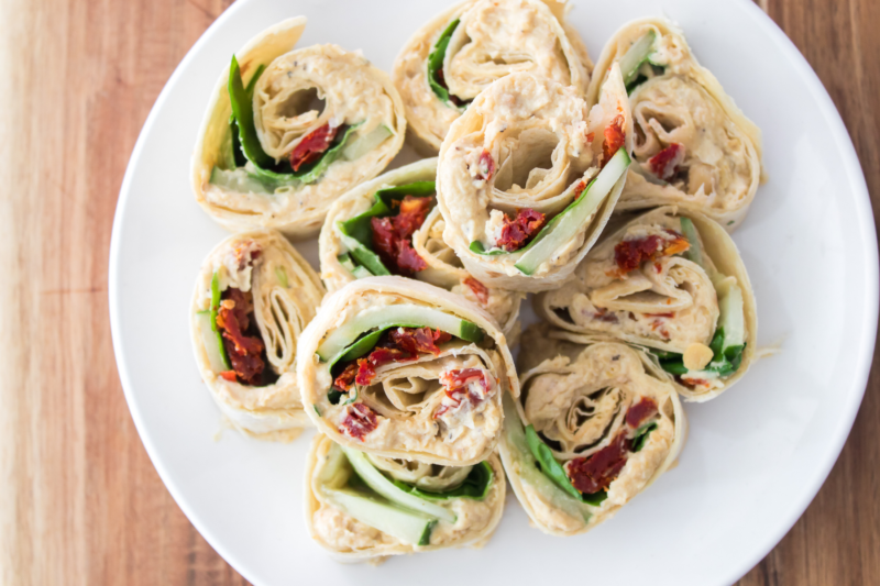 - Pinwheels with Hummus, Cucumber & Sun-Dried Tomatoes