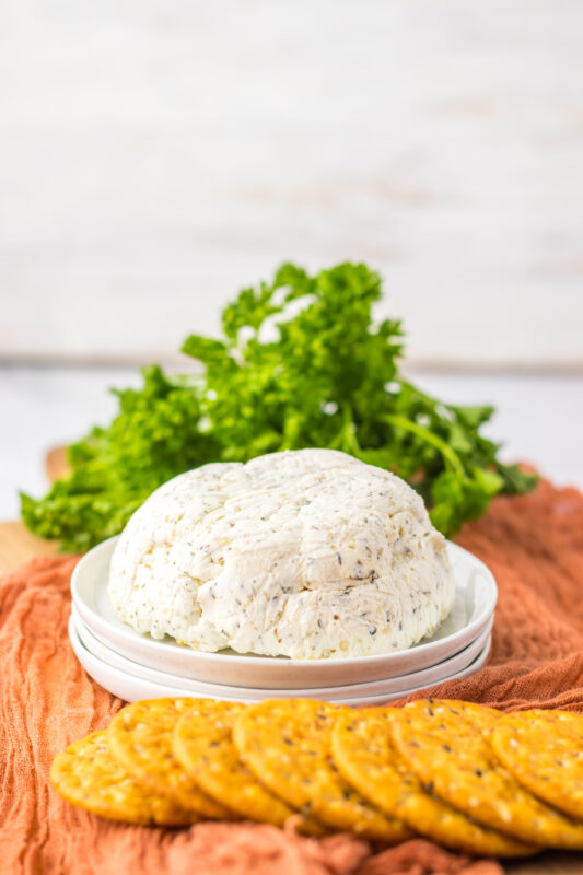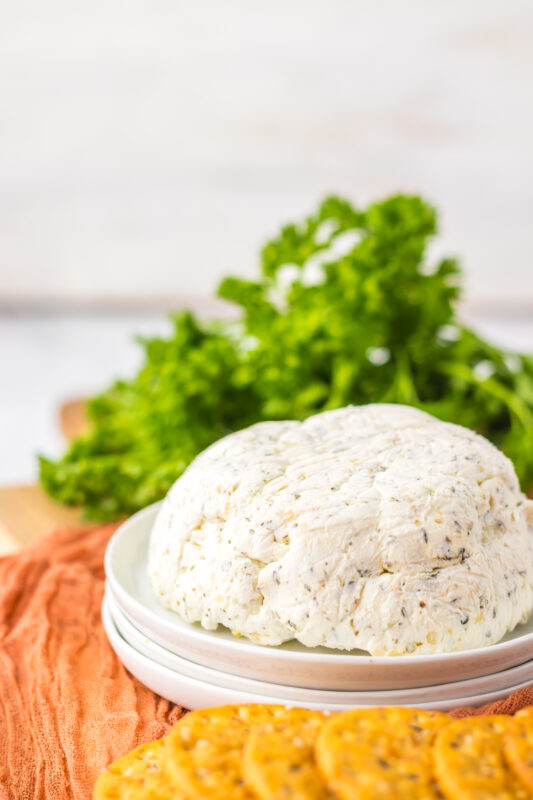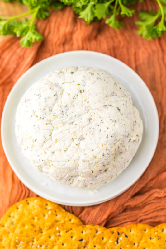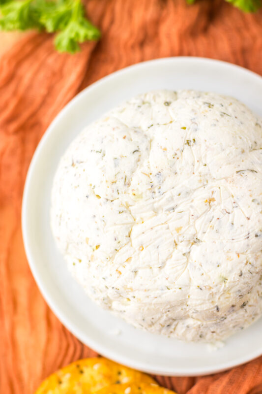 If I’m hosting, I like to shape it into a small mound or ball and sprinkle a few extra herbs on top for a pretty finish.