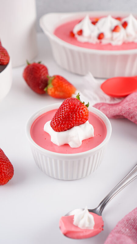 - Garnish with sugar free whipped topping and fresh strawberries, if desired, and enjoy!