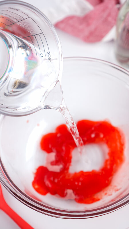 - In a medium mixing bowl, combine the jello and boiling water. Stir until the jello has dissolved.