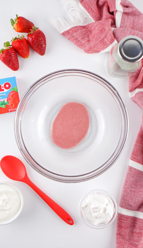 - Sugar Free Strawberry Jello (0.3 oz) — This sugar-free strawberry jello gives the dessert its sweet, fruity flavor without added sugar.