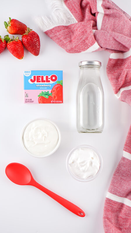 Use different jello and yogurt flavor combos to match your mood or the season, strawberry and vanilla is a classic, but lemon or raspberry are delicious too.