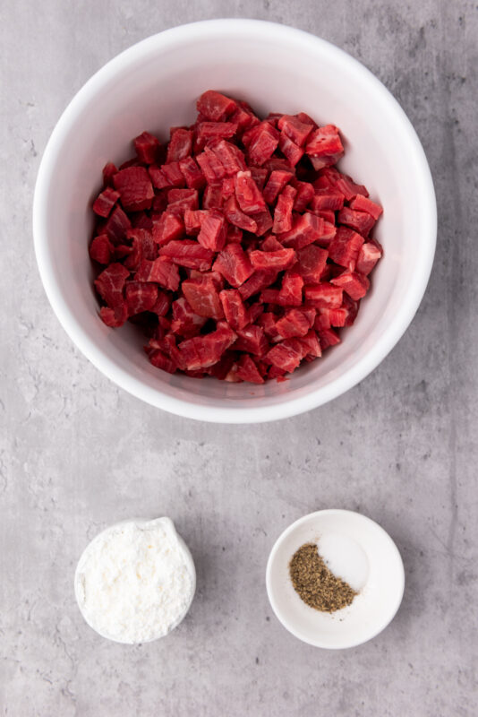 - Season the steak with salt and pepper, then coat it with cornstarch. Toss until the steak is evenly coated.