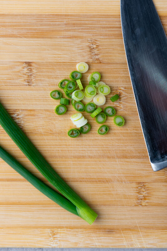 - Slice the scallion into thin pieces.