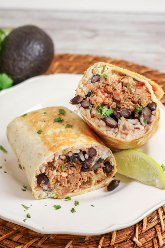 - 2 cups cooked white or cilantro-lime rice Adds bulk to the burritos so they’re more satisfying without needing extra meat.